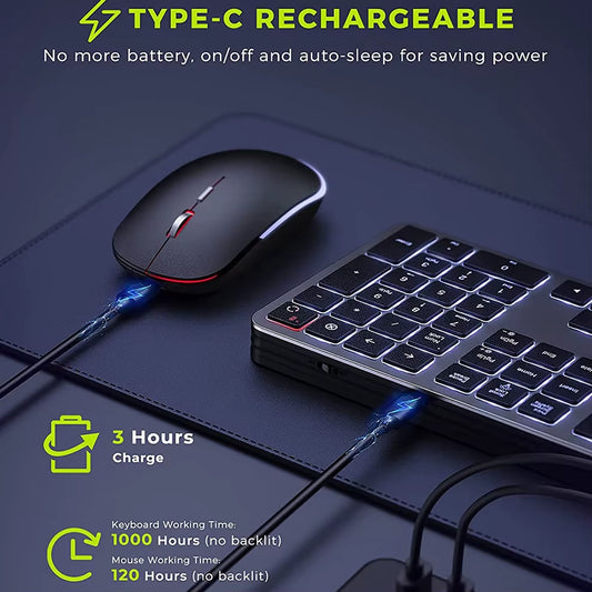 Backlight Wireless Keyboard and Mouse Combo 2.4G USB Silent Keyboard Set Rechargeable Full-Size Slim Keyboard & Mouse Set